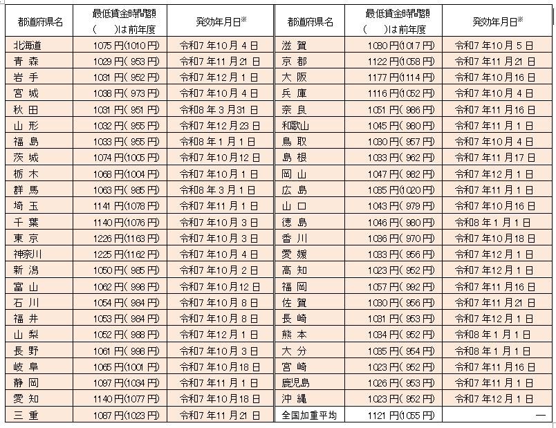 <令和7年度 最低賃金額答申/全ての都道府県で地域別最低賃金の答申がなされました>