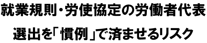 形骸化しがちな労使協定や就業規則届出の際の労働者代表選出ですが、おざなりな選出は大きなリスクにつながることがあります。